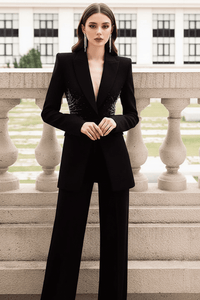 The Beaded Diamond One-Button Suit Trousers Set is the perfect combination of sophistication and style. This two-piece blazer set features a sleek V-neck collar, one-button closure, and beaded rhinestone decoration for an added touch of elegance. Designed for the modern woman, this office formal set offers a regular fit with breathable, eco-friendly polyester/cotton fabric. Perfect for summer office wear or formal occasions, this set exudes confidence and style.