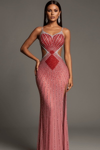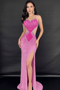 Step into the spotlight with the Rosalie Crystal Mermaid Gown, a couture-level masterpiece designed for women who love high-impact glamour. This breathtaking crystal mermaid gown is handcrafted in shimmering candy-pink fabric and adorned with individually applied crystals, rhinestones, and diamond-like embellishments that illuminate every move.