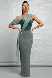Crafted from LuxeLane’s signature stretch bandage fabric, each gown is individually shaped to contour the figure while maintaining breathable comfort for all-evening wear. The asymmetrical neckline and floor-length cut create a statuesque, red-carpet-ready effect — making Maelis an unforgettable choice for weddings, galas, and formal evenings where confidence and craftsmanship shine.