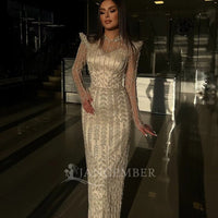 Luxury Beaded High-Neck Long Sleeve Evening Gown
