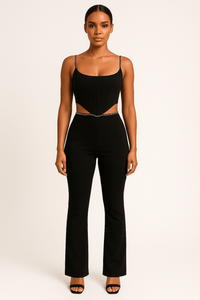 Designed for days when confidence is key, the Rhea Set by Luxe Lane delivers a sleek silhouette with minimal effort. This solid-color two-piece outfit features a figure-hugging camisole top paired with matching full-length bottoms, offering the perfect balance of sexy and sophisticated.