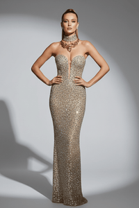 The Rhinestone Halter Evening Gown defines modern opulence with precision and grace.