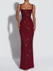 Sequin Square-Neck Sleeveless Bodycon Maxi Evening Dress