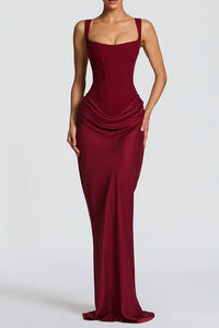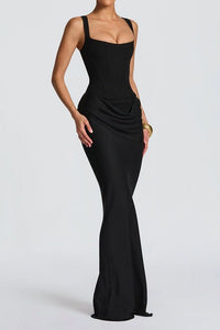 Square Neck Ruched Sleeveless Bodycon Maxi Evening Dress
