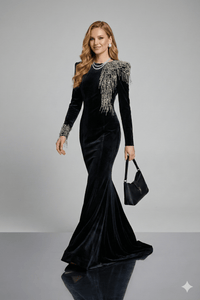 Step into pure sophistication with this velvet beaded tassel gown, a masterpiece of timeless evening elegance. Crafted from luxurious soft-touch velvet, this floor-length dress features a figure-flattering mermaid silhouette that enhances every curve. The long sleeves, O-neckline, and beaded tassel embellishments create a graceful balance of glamour and refinement — perfect for formal events and black-tie occasions.